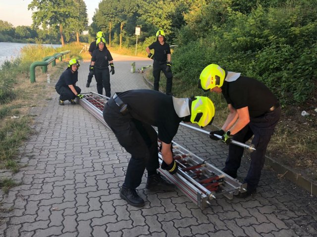 Vergangenen Mittwoch waren die verschieden tragbaren Leitern Thema beim Ausbildungsdienst. Der Dienst fand an der Stadtbahnhaltestelle Nordhafen und der Mittellandkanalbrücke der Schulenburger Landstraße statt.