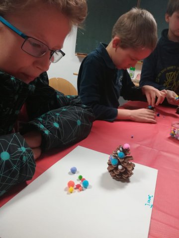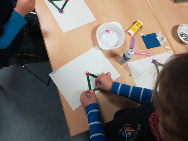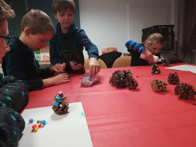 Mit viel Kleber, Bastelbögen und Glitzer kreierten die Kids bunte Zapfen vom Baum, eine Kerze mit buntem Rand und wahlweise auch Glitzerrand sowie lauter Tannenbäumchen in Form von miteinander verklebten Holzstäbchen. Es wurde sich also richtig kreativ ausgetobt. Präsentiert wurden viele der schönen Basteleien am 01.12. bei der Öffnung des ersten Adventstürchens auf dem vinnhorster Weihnachtsmarkt. Wer sich dennoch ein Bild von den vielen Basteleien machen möchte, dem empfehlen wir wärmstens folgende Fotos.