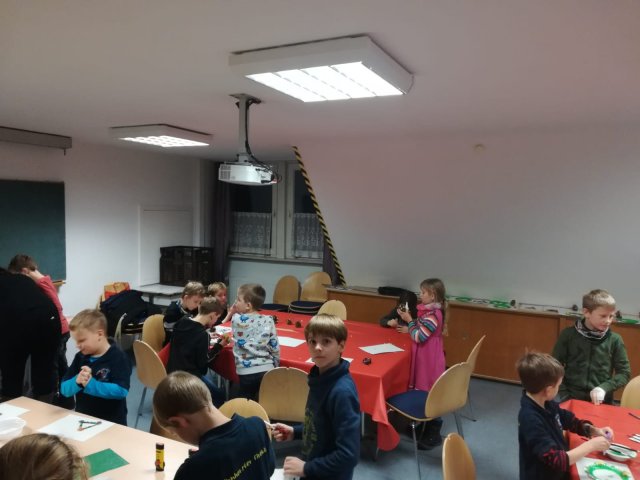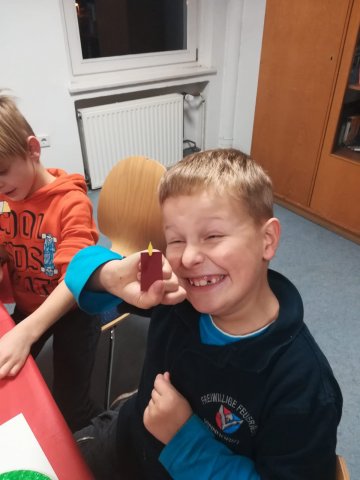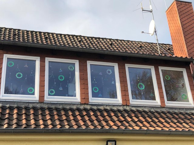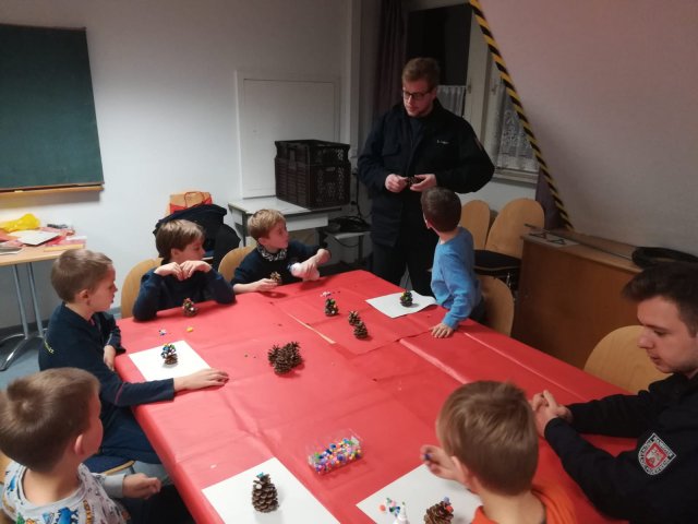 Vergangene Gruppenstunde wurde dazu genutzt Weihnachtsdekoration für die Fenster im Feuerwehrhaus zu gestalten.