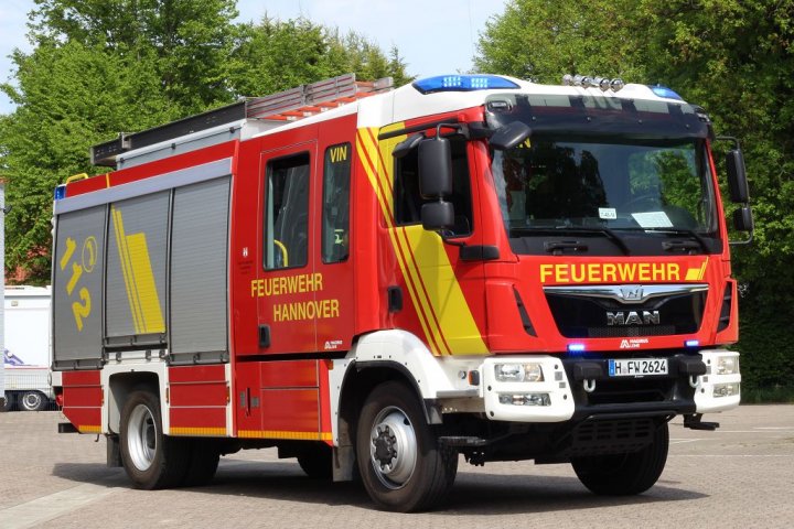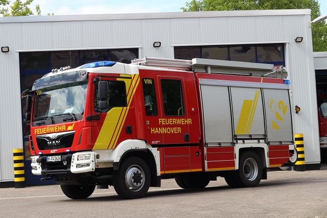 Bei einem Alarm für die Ortsfeuerwehr Vinnhorst rückt das HLF 20 als erstes Fahrzeug vom Feuerwehrhaus ab. Dabei beträgt die Besatzungsstärke grundsätzlich eine Löschgruppe (1/8).