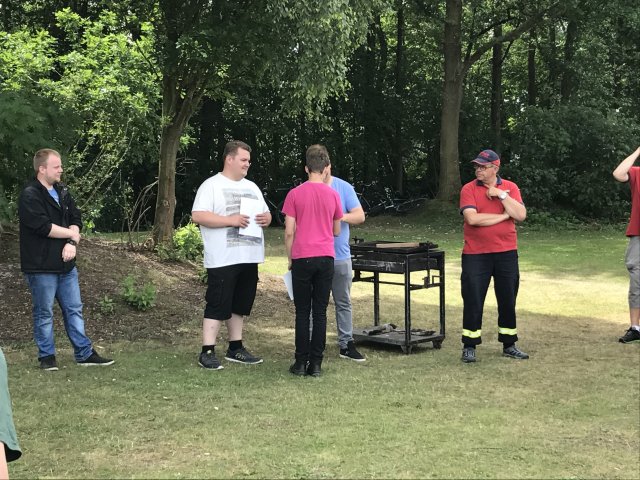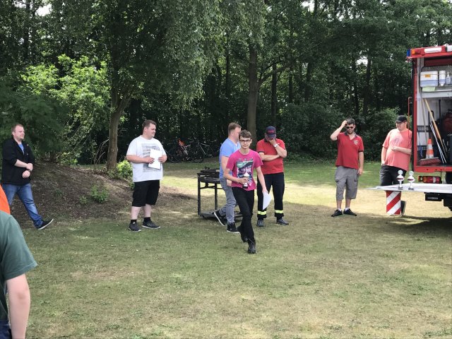Nach dem Frühstück am nächsten Tag begann das Abbauen. Als alles wieder in den Fahrzeugen verstaut war, fand die Siegerehrung statt. Für alle Aufgaben beim Spiel ohne Grenzen, dem Orientierungsmarsch und dem Wurfballtunier gab es Punkte. Wir belegten dabei den dritten Platz in der Gesamtwertung und erhielten einen Pokal und eine Urkunde.