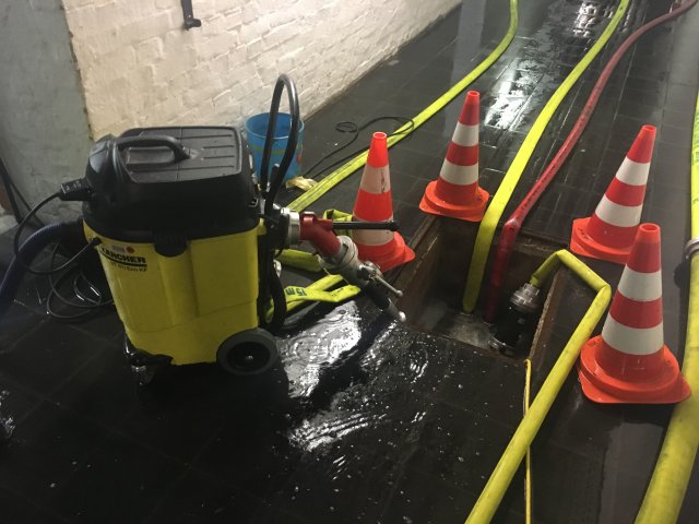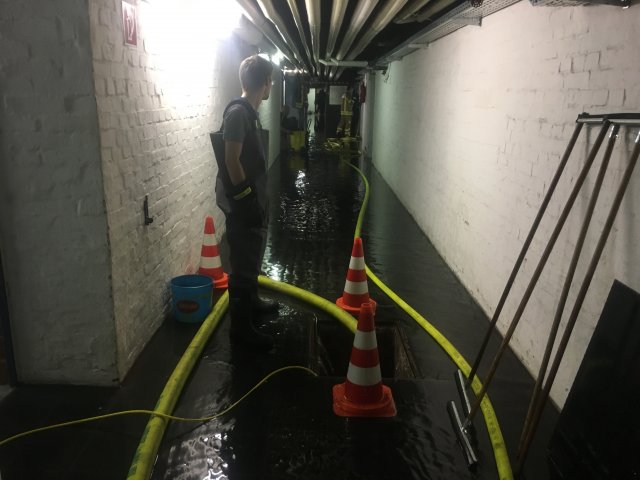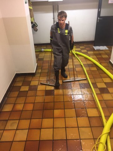Insgesamt arbeiteten wir fünf Einsatzstellen ab, darunter ein großer Wasserschaden auf circa 1000 m² im Kellerbereich eines Industriebetriebes.
