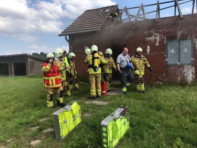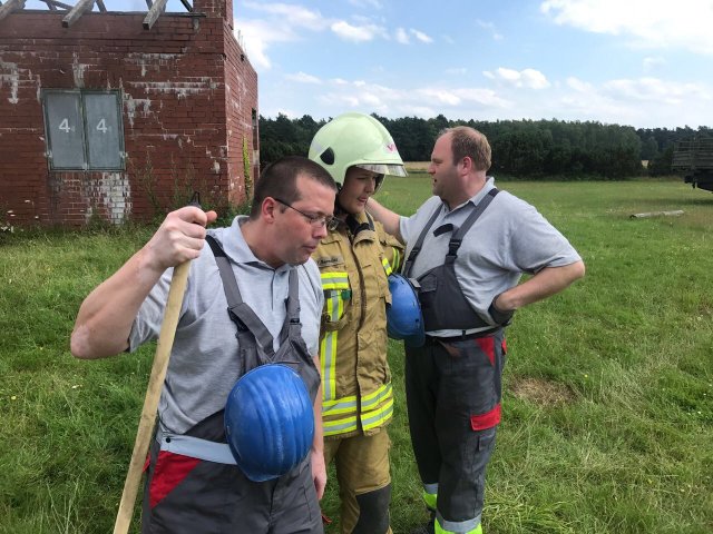 Bereits am Freitagmorgen trafen sich die Vinnhorster Brandschützer bei bestem Wetter zum stärkenden Frühstück. Nach Bezug der Unterkunft in Ostenholz warteten anschließend diverse Einsätze auf die Einsatzkräfte. Gemeinsam mit den Ortswehren aus Stöcken und Wettbergen stellten wir den “4. Löschzug” und arbeiteten Freitag und Samstag insgesamt neun verschiedenste Übungen ab. Ob nun eine Person aus größerer Höhe gestürzt war, der Schornstein brannte oder Personen nach einem Verkehrsunfall aus einem PKW gerettet werden mussten – die sehr realitätsnahen Übungen verlangten den Einsatzkräften einiges ab. Dies ist sicherlich auch den Darstellern der realistischen Unfalldarstellung, kurz RUD, und der Vorbereitung der Aufbauteams geschuldet.