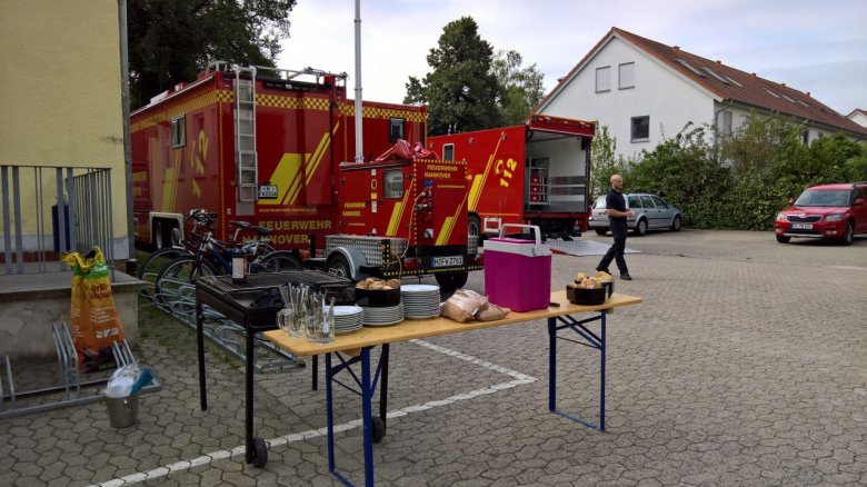 Anschließend konnten sämtliche Einsatzmittel wie die Melderkräder, der GW-FüKom, der Einsatzleitwagen (ELW) 2-1 und der ELW 3-4 im aufgebauten und einsatzbereiten Zustand begutachtet werden. Es wurden zudem viele Fachgespräche geführt und sich über Unterschiede, Erfahrungen und Geschichten beider Feuerwehren ausgetauscht. Allerdings gilt auch für Fernmelder: ohne Mampf nur schwieriger Kampf! Weshalb wir, im angenehmeren Teil, selbstverständlich kühle Getränke und ein leckeres Grillbuffet anboten.