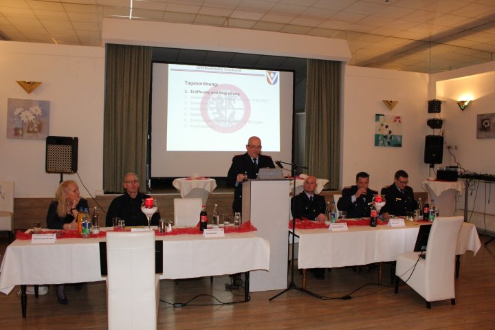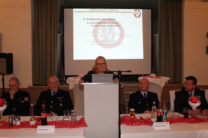 Ortsbrandmeister Torsten Keune eröffnete pünktlich um 19 Uhr die diesjährige Jahreshauptversammlung und begrüßte die zahlreichen Gäste. Aus dem Stadtfeuerwehrkommando konnten wir Stadtbrandmeister Michael Wilke, Stadtkinderfeuerwehrwart Sascha de Buhr und Stadtjugendfeuerwehrwart Jörg Krohn begrüßen. Von der Berufsfeuerwehr begrüßten wir den zuständigen A-Dienst, Martin Flemming als Vertretung für unseren Fachbereichsleiter, von der Feuer- und Rettungswache 2, Dirk Honigbaum, sowie Brandabschnittsleiter der Feuer- und Rettungswache 5, Tobias Slabon. Aus den Reihen der Politik sind unsere Bezirksbürgermeisterin Edeltraut-Inge Geschke (SPD), Angelika Jagemann (CDU), Michael Spatzker (FDP), Christine Deja (Die Grünen) und Monika Windhorn (Die Linke) unserer Einladung gefolgt.
