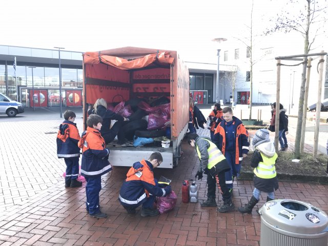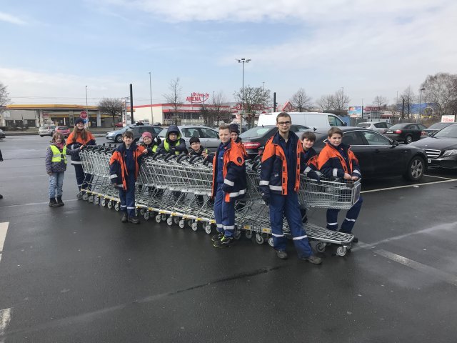 “putzmunter” machten sich also auch unsere Brandschützer von morgen, bewaffnet mit Müllsack und Handschuhen, auf den Weg. Anlaufpunkte waren unter anderem der Vorplatz des vinnhorster Bahnhofes, der Vinnhorster Weg, sowie der Burgweg. Neben alten Autoreifen, jeder Menge Unrat und Verpackungsmaterial, sammelten wir auch einen Kühlschrank ein. Des Weiteren fanden wir an verschiedenen Orten insgesamt 19 Einkaufswagen eines ortsansässigen Supermarktes. Natürlich nahmen wir diese mit und brachten sie ihrem rechtmäßigen Besitzer zurück. Nach einer kurzen Pause ging es dann mit vollem Anhänger zur Sammelstelle am Mühlenberger Markt. Dort wurden alle Müllsäcke und Fundstücke abgeladen. Es kamen allein durch die Stadtjugend- und Kinderfeuerwehr über 400 Säcke zusammen. Natürlich durften im Anschluss eine warme Mahlzeit und ein Getränk nicht fehlen. Zurück am Feuerwehrhaus wurden Fahrzeuge und Anhänger gesäubert. Ein besonderer Dank gilt unserer Bezirksbürgermeisterin Edeltraut Geschke, die uns wie jedes Jahr, tatkräftig bei dieser Aktion unterstützt hat.