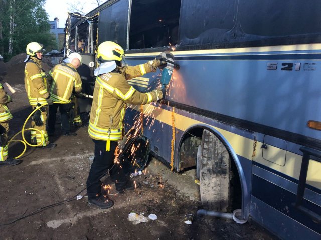 Mehrere eingeklemmte Personen bei Busunfall - Einsatzübung