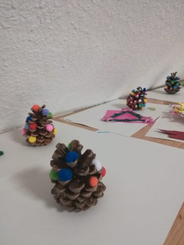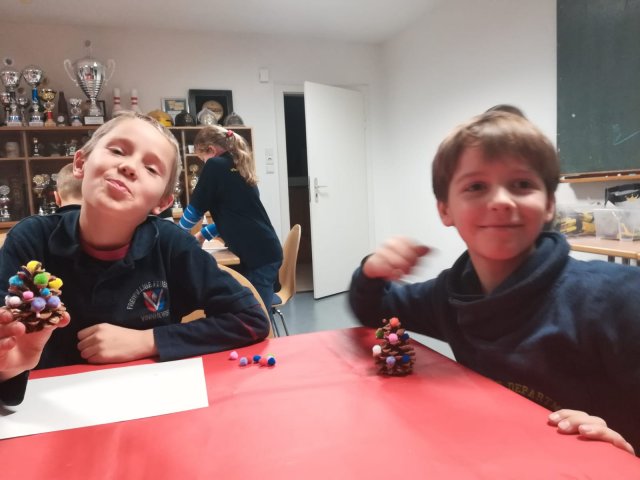 Mit viel Kleber, Bastelbögen und Glitzer kreierten die Kids bunte Zapfen vom Baum, eine Kerze mit buntem Rand und wahlweise auch Glitzerrand sowie lauter Tannenbäumchen in Form von miteinander verklebten Holzstäbchen. Es wurde sich also richtig kreativ ausgetobt. Präsentiert wurden viele der schönen Basteleien am 01.12. bei der Öffnung des ersten Adventstürchens auf dem vinnhorster Weihnachtsmarkt. Wer sich dennoch ein Bild von den vielen Basteleien machen möchte, dem empfehlen wir wärmstens folgende Fotos.