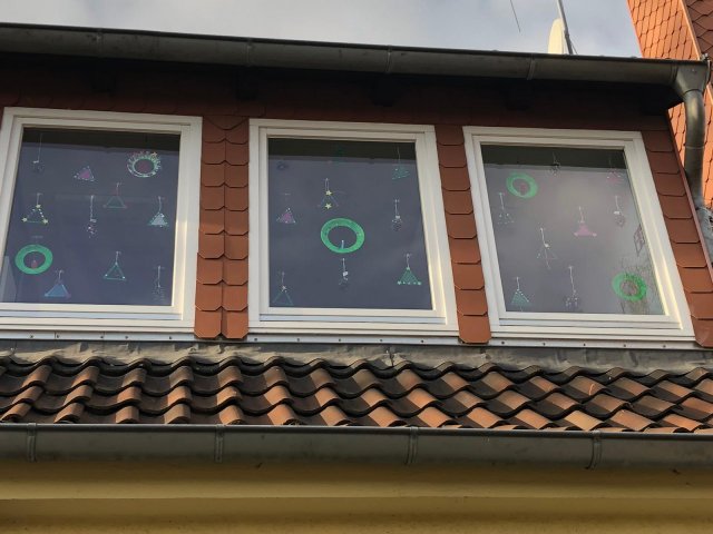 Vergangene Gruppenstunde wurde dazu genutzt Weihnachtsdekoration für die Fenster im Feuerwehrhaus zu gestalten.