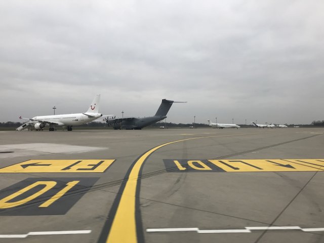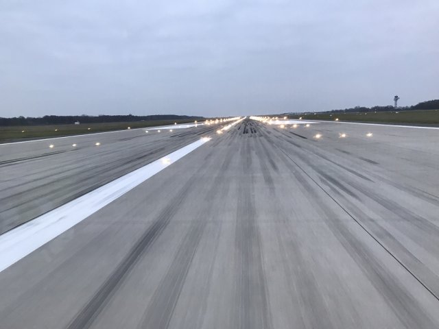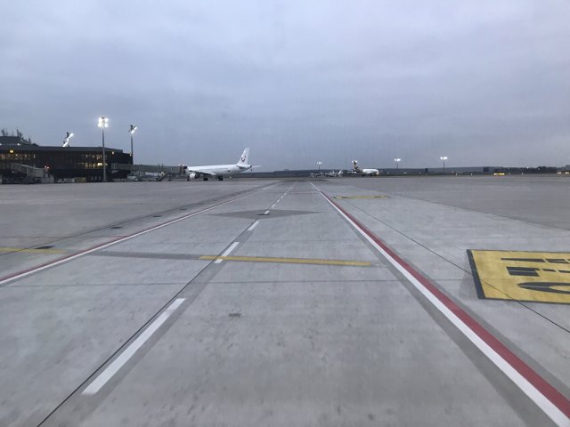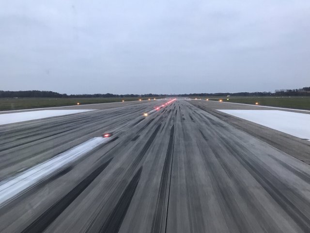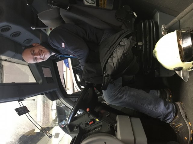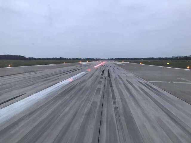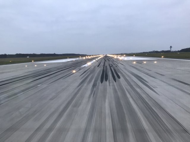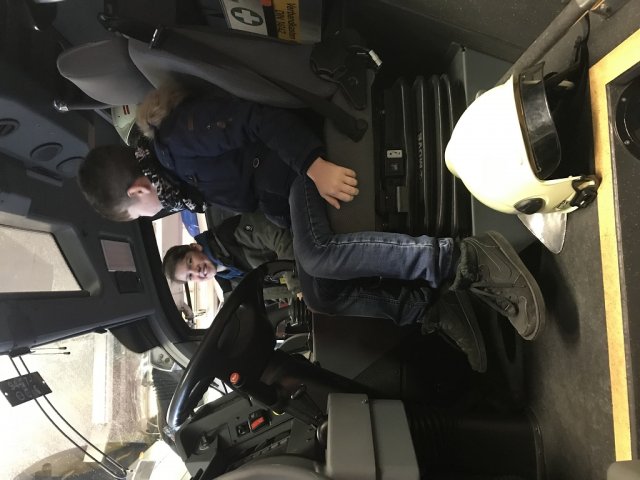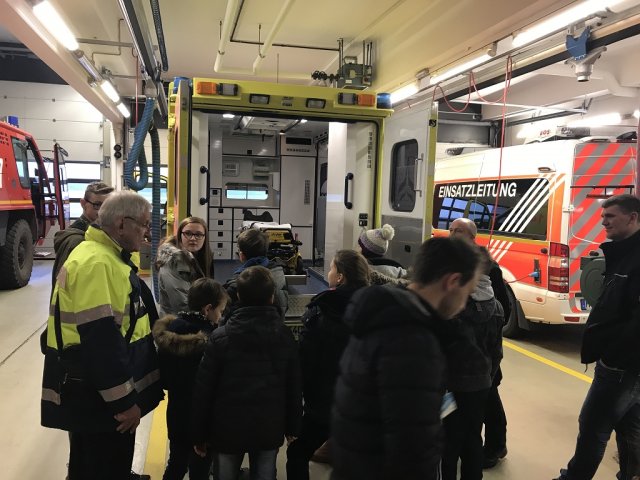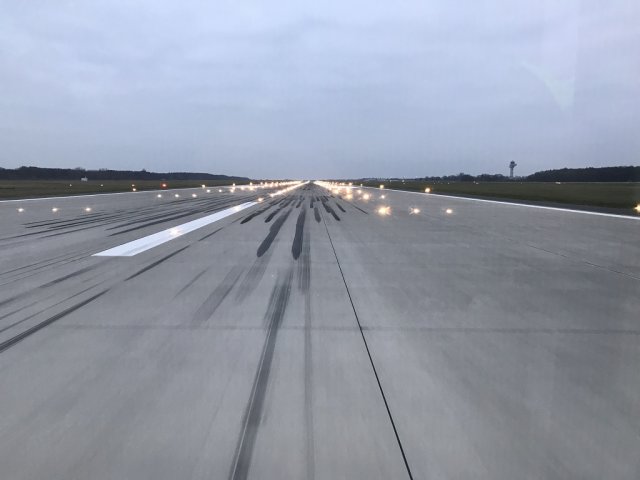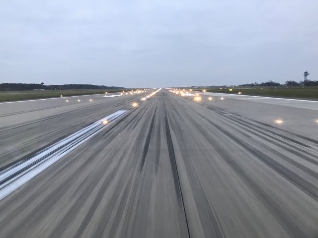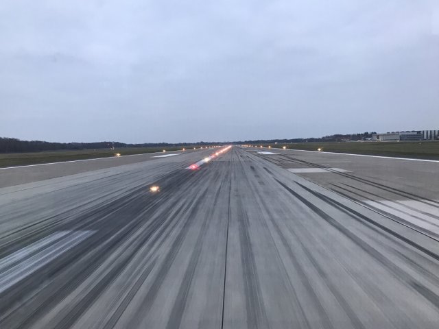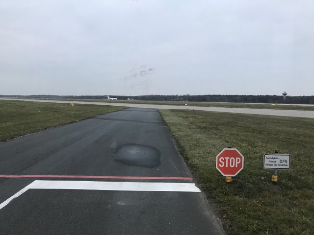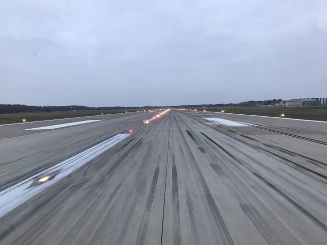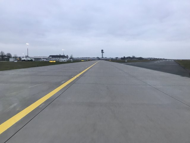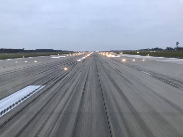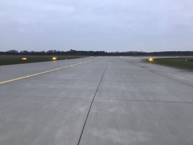 Dort angekommen empfingen uns ein Mitarbeiter des Flughafens und unser Kamerad Dirk Heidenreich, welcher hauptberuflich bei der Flughafenfeuerwehr arbeitet. Mit Besucherausweisen ausgestattet gingen wir zu den Sicherheitskontrollen, wo jeder auf gefährliche Gegenstände kontrolliert wurde. Im Anschluss begaben wir uns zum Vorfeld, wo uns ein Bus abholte und uns zur Wache der Flughafenfeuerwehr brachte. Vor Ort erzählte Dirk uns etwas über die Aufgaben der Flughafenfeuerwehr und erklärte uns die Besonderheiten der verschiedenen Einsatzfahrzeuge. Auf der neuen Rettungstreppe machen wir dann noch ein Gruppenfoto. Nach einer kurzen Pause mit Keksen und Getränken holte uns der Bus wieder ab. Es ging aber nicht wieder zum Terminal, sondern in Richtung „Nordbahn“. Nachdem der „Busfahrer“ sich die Zustimmung des Towers zum Befahren der Nordbahn eingeholt hatte, fuhren wir bei voller Befeuerung einmal die ganze Start- und Landebahn ab. Auf dem Rückweg zum Terminal führte unsere Fahrt noch an den Flugzeugwartungshallen vorbei. Am Terminal angekommen verabschiedeten und bedankten wir uns für die großartige und interessante Führung und besuchten noch kurz die Aussichtsterrasse des Flughafens.
