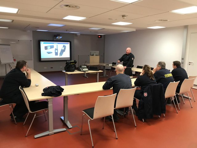 Nachdem nun der Zeitplan der Einführung in der Region Hannover und die zu beschaffenden Geräte feststehen, war es Zeit, sich mit diesem Thema intensiv zu beschäftigen. Unter Leitung unseres Ortsbrandmeisters, der auch schon Kollegen der Berufsfeuerwehr fortgebildet hat, wurden sowohl die technischen Grundlagen als auch die praktische Handhabung vermittelt.