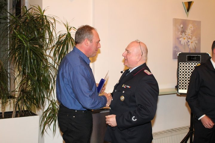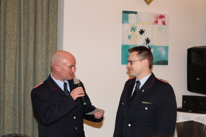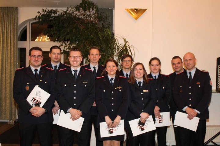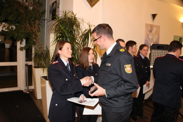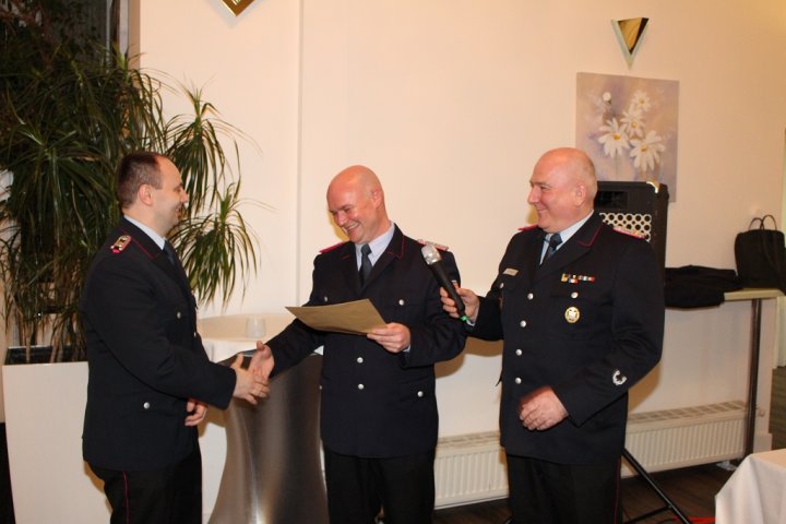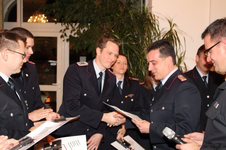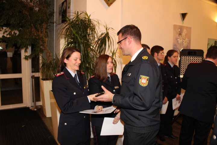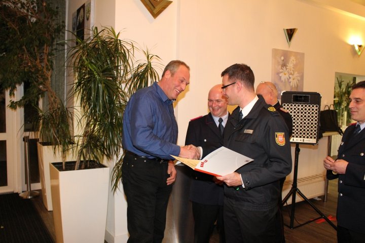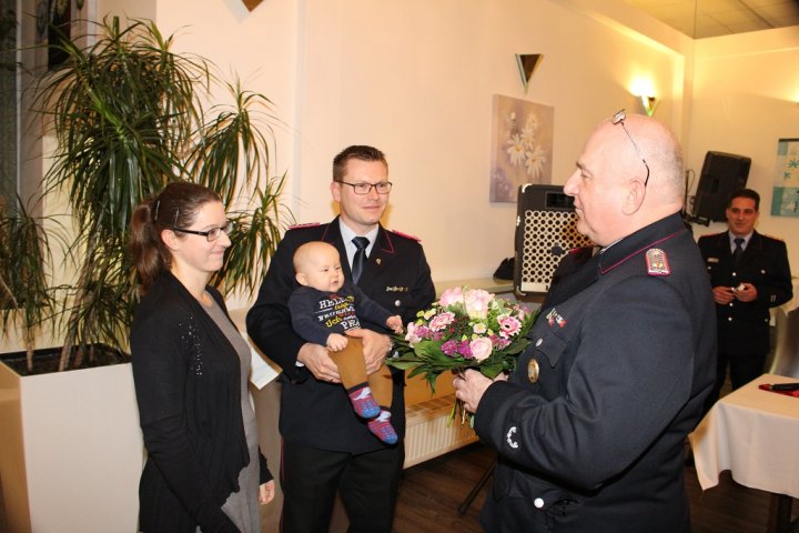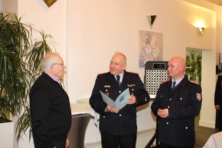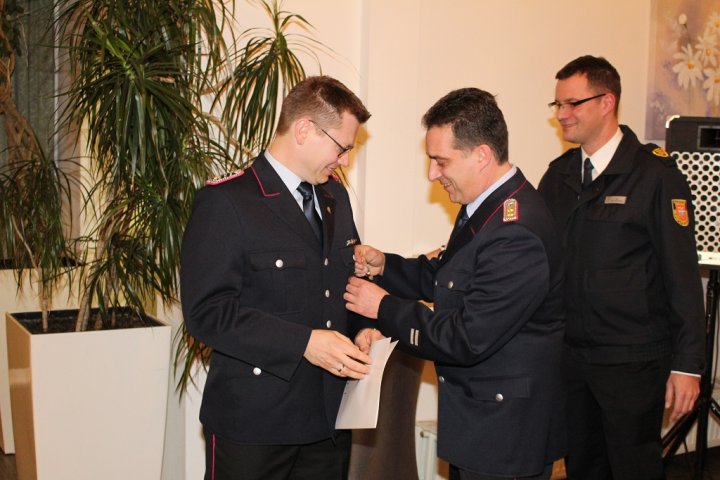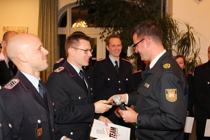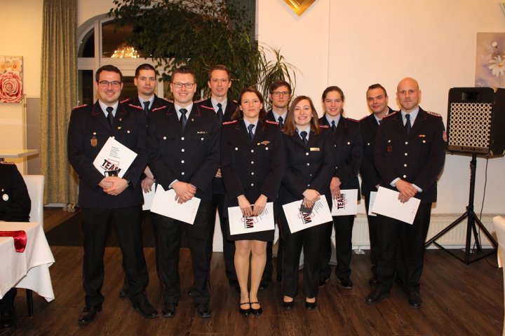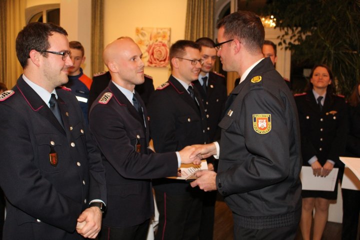 Bevor der Abend mit einem, in der Geschichte der Ortsfeuerwehr erstmalig warmen Buffet beendet wurde, durften sich einige Mitglieder über ihre Beförderungen freuen. Nach bestandenem Truppmannlehrgang Teil 1 wurden Alina Schönewolf, Simon Priemer und André Kay zum Feuerwehrmann (SB) ernannt. Justin Hintzke wurde zum Oberfeuerwehrmann befördert, Julia Richter zur Hauptfeuerwehrfrau und Katharina Schimmer zur 1. Hauptfeuerwehrfrau. Den Dienstgrad Hauptlöschmeister erhielten Marcel Gotzmann, Eike Jagemann, Tobias Keune, Christian Köhler und Holger Libera. Im weiteren Verlauf erhielt der Kamerad Christian Köhler eine Ehrung für 25-jährige Mitgliedschaft. Hans Fleischmann wurde für 50-jährige Mitgliedschaft geehrt. Auch die Ortsfeuerwehr benötigt ab und zu Unterstützung. Friedrich Baumgarte ist stets zur Stelle, wenn ein Traktor benötigt oder ein Übungsobjekt für die Jugendfeuerwehr gesucht wird. Aus diesem Grund erhält er verdienterweise die Ehrenmedaille des Landesfeuerwehrverbandes.