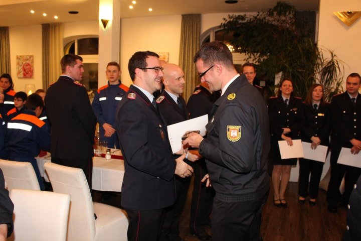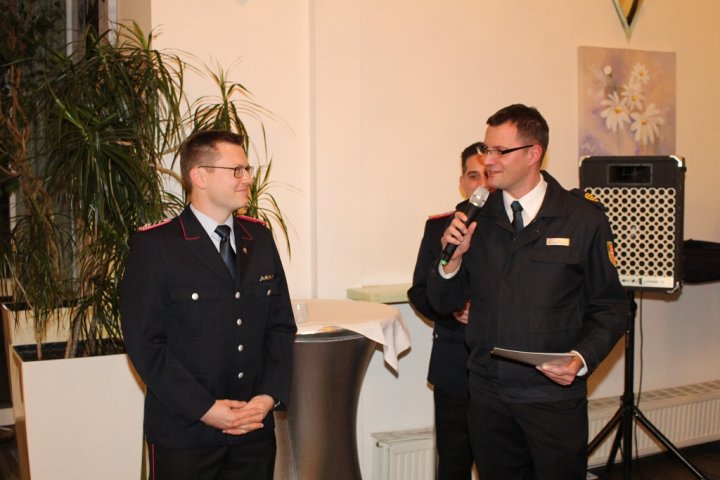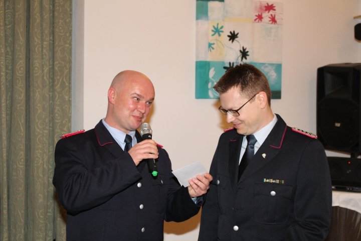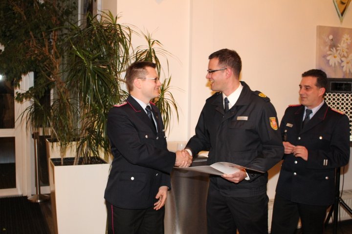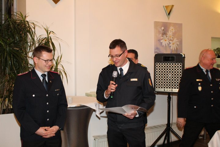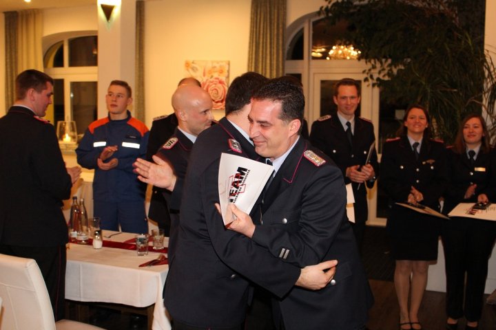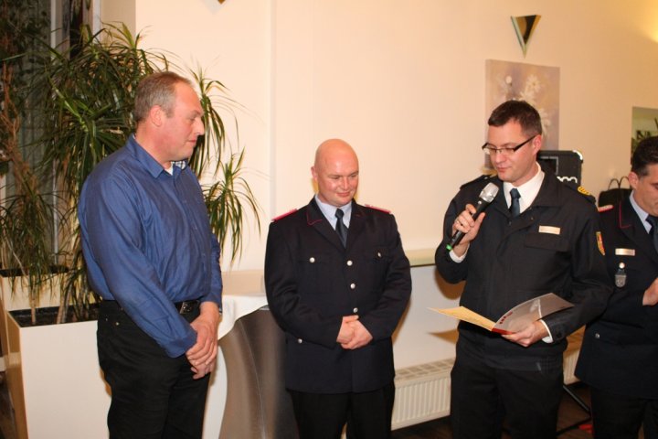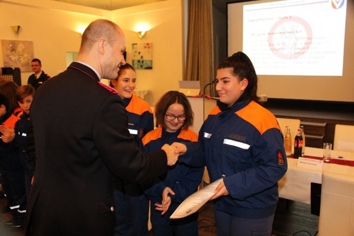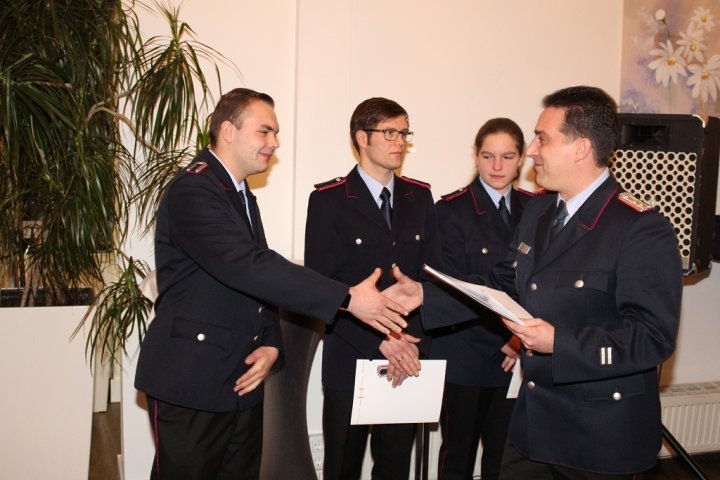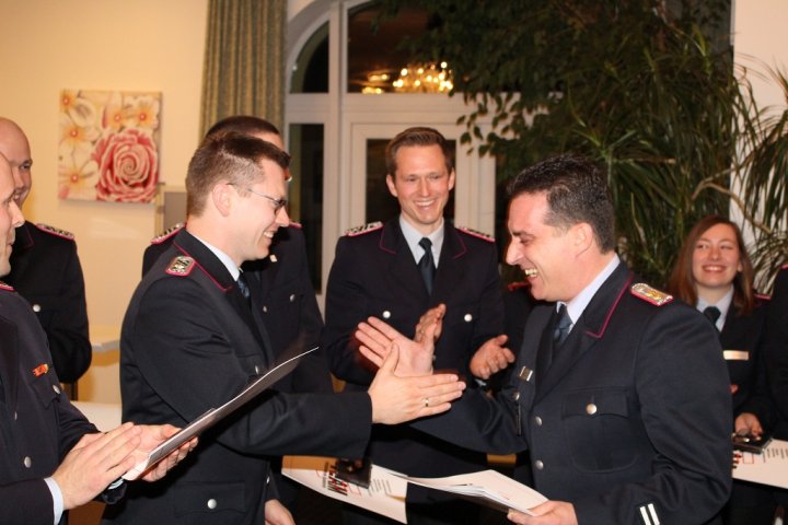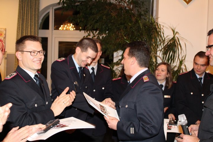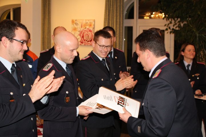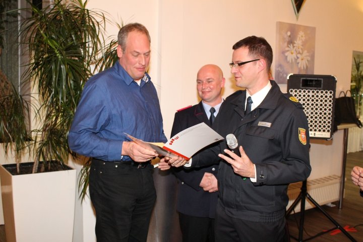Bevor der Abend mit einem, in der Geschichte der Ortsfeuerwehr erstmalig warmen Buffet beendet wurde, durften sich einige Mitglieder über ihre Beförderungen freuen. Nach bestandenem Truppmannlehrgang Teil 1 wurden Alina Schönewolf, Simon Priemer und André Kay zum Feuerwehrmann (SB) ernannt. Justin Hintzke wurde zum Oberfeuerwehrmann befördert, Julia Richter zur Hauptfeuerwehrfrau und Katharina Schimmer zur 1. Hauptfeuerwehrfrau. Den Dienstgrad Hauptlöschmeister erhielten Marcel Gotzmann, Eike Jagemann, Tobias Keune, Christian Köhler und Holger Libera. Im weiteren Verlauf erhielt der Kamerad Christian Köhler eine Ehrung für 25-jährige Mitgliedschaft. Hans Fleischmann wurde für 50-jährige Mitgliedschaft geehrt. Auch die Ortsfeuerwehr benötigt ab und zu Unterstützung. Friedrich Baumgarte ist stets zur Stelle, wenn ein Traktor benötigt oder ein Übungsobjekt für die Jugendfeuerwehr gesucht wird. Aus diesem Grund erhält er verdienterweise die Ehrenmedaille des Landesfeuerwehrverbandes.