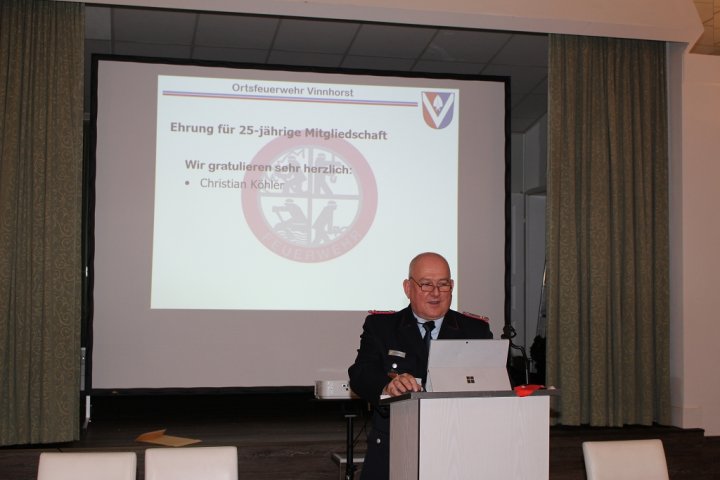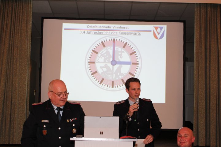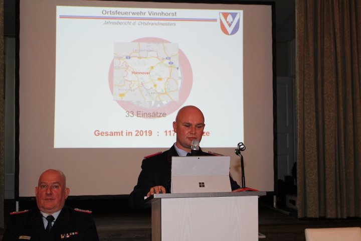 Nun stellten die einzelnen Abteilungen der Ortsfeuerwehr Vinnhorst ihre Jahresberichte in Daten, Zahlen, Fakten und vielen Fotos vor. Im Anschluss bedankte sich Ortsbrandmeister Torsten Keune bei allen, die die Ortsfeuerwehr im Jahr 2019 tatkräftig unterstützt haben. Im Anschluss stand am Abend die Wahl eines neuen Kassenrevisors auf der Tagesordnung - dieses Amt wird zukünftig Torsten Walter übernehmen.