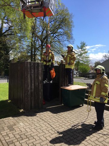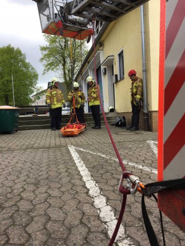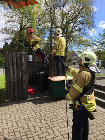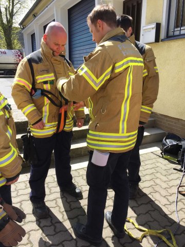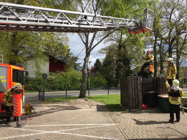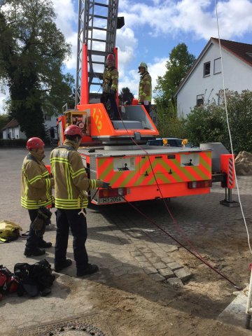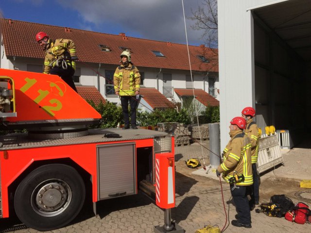 Einige Drehleitermaschinisten der Ortsfeuerwehr Vinnhorst nahmen heute an einer Fortbildung zum Thema Absturzsicherung teil.