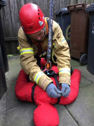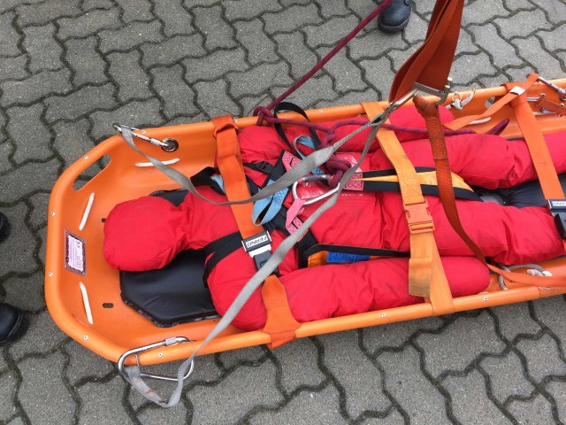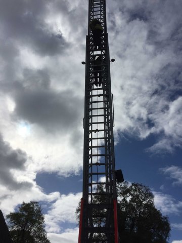 Unser Kamerad Denis Schlunegger leitet die Fortbildung, welche für jedem Maschinisten einmal im Jahr zu absolvieren ist. Zu Beginn wurde sehr ausführlich über die Grundsätze beim gesicherten Vorstieg an einer Drehleiter gesprochen. Im Anschluss übten wir das Abseilen aus dem Korb auf ein Flachdach. Im Vordergrund standen die Rettung von Personen mit dem Abseil- und Rettungsgerät „Safety Roll“, insbesondere aus Schächten sowie das Retten mittels Schleifkorbtrage. Zum Schluss der Fortbildung ging es um interne Einsatztaktiken.